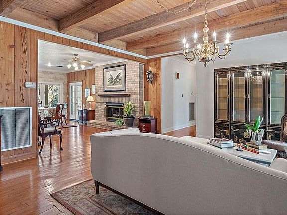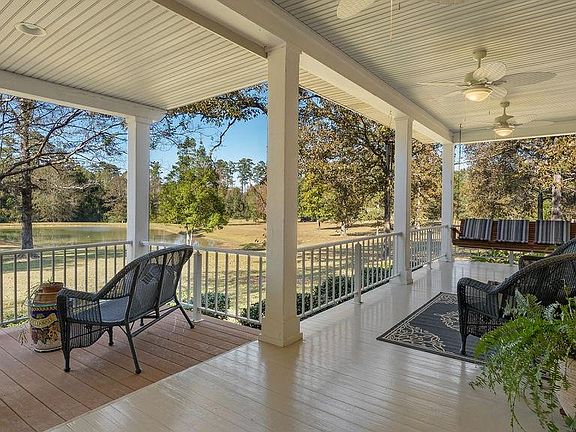 Priced below appraisal! Come enjoy the quiet, serene setting of 20 rolling acres, spring fed pond and creek! 2 primary suites with front porch access. 2 more bedrooms. 3 1/2 baths. 2 living areas, tons of storage. Laundry/mudroom. Wood, tile and brick floors. Pecky Cypress accent walls. Fireplace. Beautiful views. Workshop and equipment storage with half bath. Back Trex deck, ceramic coated paint on exterior wood. Blueberry bushes. Wiring for portable generator. Well kept home. Min. to Downtown Covington!