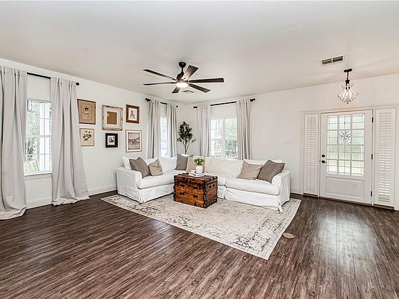 Chic country cottage tucked away on 2.3 acres with a pond in Folsom.Recent updates:fully renovated Kitchen with quartz counters,stainless appliances,painted cabinets,tile backsplash,farmhouse sink.Designer lighting throughout & Vinyl plank flooring.Guest bedroom with direct access to bath with new beadboard paneling.Custom mantle.Private patio off Primary bedroom.Screened patio.Shed with water & electric.New 30x40 workshop & 12x30 lean-to.New roof.New water heater.Attic structurally designed for addition.