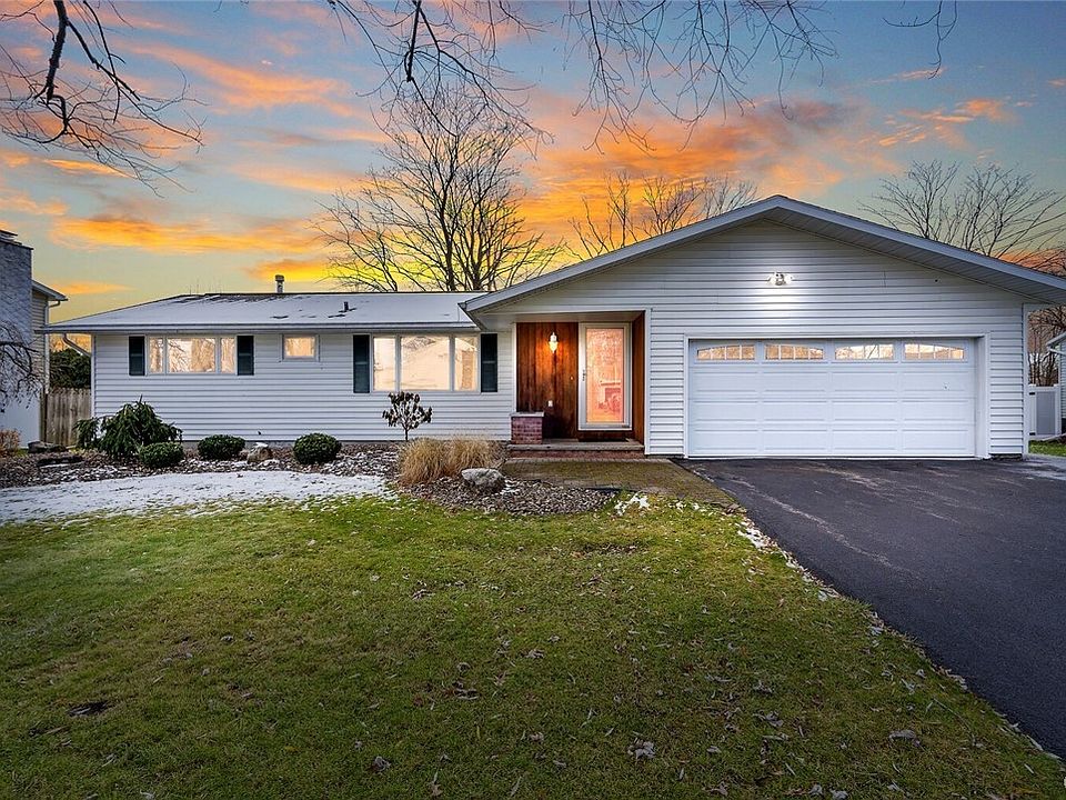 Welcome to your dream ranch home in the Clay Northtown park neighborhood!This 3BR 1.5 bath 1556sq ft meticulously maintained home boasts both modern comfort and classic charm.The expansive Great Room w/beautiful hardwood floors, creates an inviting space for both relaxation and entertainment.The family room features a brick wood-burning fireplace adding character to the space.Sliding glass doors open to a generously sized deck.The large eat-in kitchen is equipped with a newer cooktop installed in 2022. This space is not only functional but also aesthetically pleasing, providing the ideal setting for family meals and socializing.The primary suite, a private oasis with its own ensuite half bath, offers a tranquil retreat.Two additional bedrooms provide ample space for family members or guests. The exterior of the property features a partial fenced-in backyard, an arbor that adds a touch of elegance, and a 2-car garage providing convenience and extra storage.Have peace of mind with recent upgrades, including a water tank replaced just 2 years ago and central AC that's only 5 years old.This home has been well cared for, ensuring a turnkey living experience for its fortunate new owners.