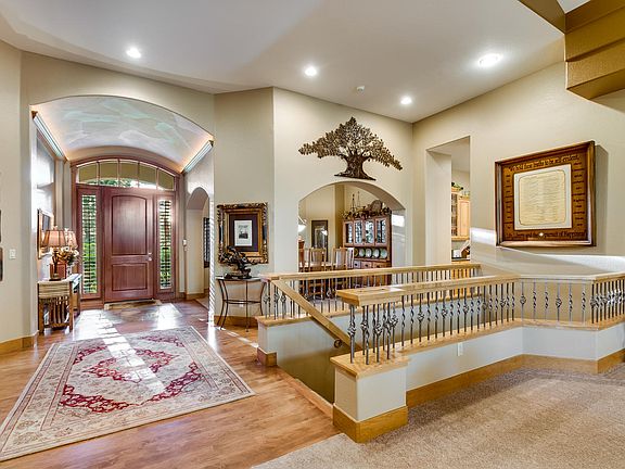 This spectacular 6 bedroom, 6 bathroom luxury ranch will take your breath away. Each detail has been chosen with thought and care, from the 80 yard concrete driveway, to the high-end professional landscaping and all the custom details that abound. As you enter the home you are drawn to the gorgeous solid maple floors throughout. Entertain family and friends in your Chef's kitchen featuring stainless steel appliances, 6 burner Thermador range with griddle and hood, gorgeous granite counters, oversized island and barn door pantry. Cozy up by the gas fireplace in the spacious living room. The large formal dining room and open sight lines on the main level lends itself to endless entertaining. The many windows with custom wood plantation shutters generously flood the home with natural light. The beautiful main floor master suite has a spa-like walk in shower, extra large jacuzzi, massive walk-in closet and gas fireplace. Downstairs features an unparalleled flex space boasting a pool table, additional gas fireplace, exercise room and bar. Step out to the newly finished deck and professionally landscaped yard to soak in the Colorado sunshine. Relish the abundance of wildlife in a serene and private setting on your expansive 4.8 acre lot! This is a great place to host a barbecue, gathering, or enjoy your morning cup of coffee. NEW ROOF with a 30-year warranty and new gutter system. Your dream home includes a serene garden area with shed nearby for storage and treehouse. Your very own retreat is nestled in mature Ponderosa pines, Spruce and Aspen trees. Perfectly suited for a luxurious lifestyle, this property offers sophistication, security and privacy with custom features you wonât find in any other properties in the neighborhood. Welcome home!
