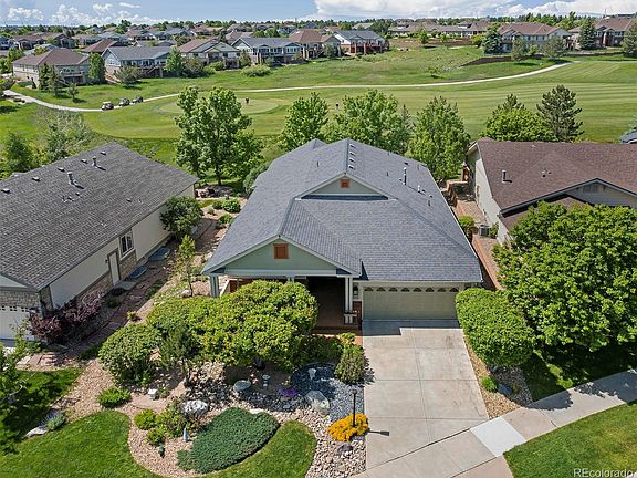 Welcome home to this incredibly remodeled home in the prestigious Heritage Eagle Bend 45+ active lifestyle community in SE Colorado. A world class resort-like living community w/ a gated entry, championship golf course, spectacularly remodeled community center that includes indoor & outdoor pools, workout center, restaurant, tennis, pickle ball courts and an abundance of community events. Your opportunity to join this incredible community awaits w/ this beautiful ranch style home sitting off the 8th green! Recently remodeled w/ a contemporary flare, this home features high-end built-in cabinet Thermador appliances, large island w/ hidden cabinet space underneath & extra seating. This gourmet kitchen features a dbl oven w/ steam, induction cooktop, quartzite counter tops, under & in cabinet lighting. The office/den off the kitchen comes w/ custom built-in wardrobe, desk & Murphy bed. The spacious dining and living room are perfect for hosting family and friends while enjoying the fireplace and oversized windows that perfectly frame the outdoor living space & spectacular views of the golf course. The peaceful primary suite offers a luxurious ensuite w/ a contemporary remodeled 5 piece bathroom collection that includes a large soaking tub, walk-in shower enclosure, double vanity, heated floors, heated toilet seat and a walk-in closet. The main floor is complete w/ a second spacious bdrm w/ walk-in closet, remodeled guest bathroom w/ walk-in shower and a conveniently located laundry room w/ newer washer and dryer off of the garage. The finished garage is pristine w/ fresh paint, epoxy flooring & car charging station. The outdoor living area is a must see! Unwind on an over-sized covered deck and outdoor kitchen while enjoying the meticulously maintained yard w/ low maintenance artificial grass and mature landscape that offers privacy and beauty. New Furnace w/ humidifier and AC. All the major cost have been paid! Come enjoy your new home, it wont last long!