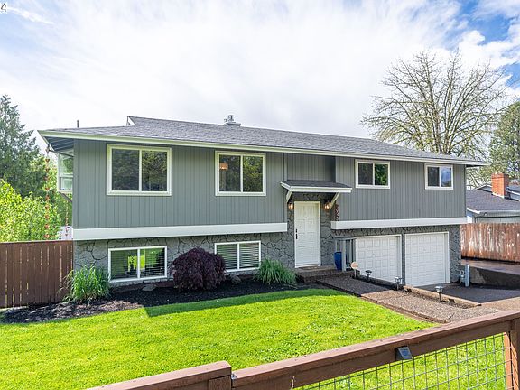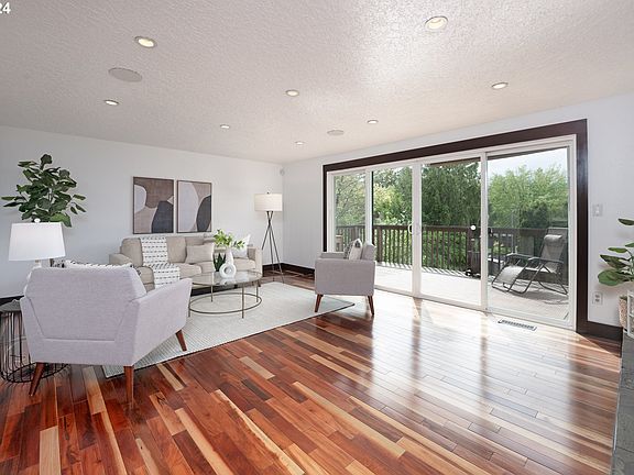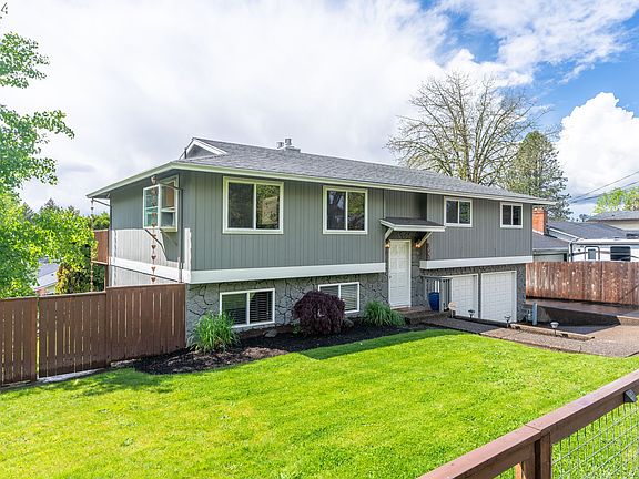 Come see this Southeast Portland Gem! The perfectly manicured front yard sets the stage for this gorgeous home! The main level boasts a spacious living area basking in natural sunlight. The living area presents beautiful hardwood floors, and a centerpiece fireplace, complete a stone hearth and built ins. Open the double sliding doors onto a large deck overlooking the expansive, fully fenced backyard. The tiled kitchen features wine storage, a garden window, and is adjoined by a stylish cozy dining area. The oversized Primary Bedroom has an en-suite bathroom with heated tile floors and a double closet. Downstairs, the daylight basement is a large bonus room that opens out to a patio and beautiful, spacious backyard, complete with mature landscaping, apple and pear trees, and a stream! The home also has plenty of extra storage, including a tool shed and two car Garage! Don't miss the paved RV parking. Mounted TV in Primary and large mirror on basement wall are included with sale. Kitchen fridge, garage fridge, washer and dryer are also included with sale.