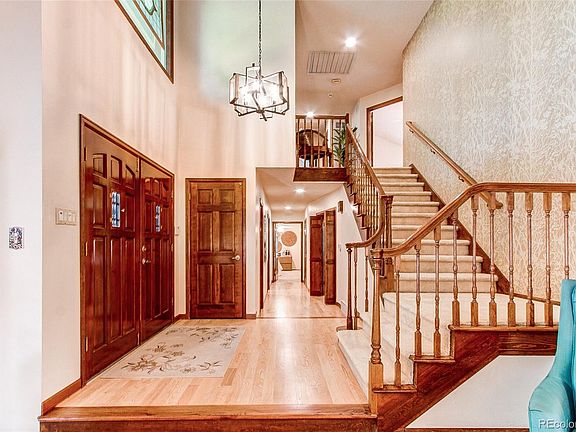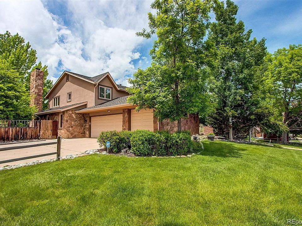 Located on a corner lot in the desirable Columbine Knolls South II neighborhood, this classically traditional, well maintained 6 bedroom/5 bathroom, 2 story is one of the largest floorplans in the area: 4877 total square feet, 3962 finished square feet. The side-load entry garage offers beautiful front yard curb-appeal. The double-door entry welcomes you to a large foyer and vaulted ceilings. A main level bedroom offers a guest/in-law suite option with an attached 3/4 bathroom and walk-in closet. It's currently being used as a guest bedroom/office combination. The home has had some updates; kitchen counters are Corian, bathroom countertops replaced with granite. Newer flooring in all but the primary bathroom. Wood floors on the main level have been refinished. Newer carpet installed on the main level bedroom, family room and basement. The home backs to a park and the award-winning Coronado Elementary School is located beyond the park. Mountain views from the back yard are even more spectacular from the primary bedroom balcony. Mature trees throughout on the nearly 1/3 acre lot. The original cedar siding has been replaced with Stucco. The third bay garage door height is oversized to accommodate taller vehicles. Plantation blinds installed throughout on the first and second story windows. Explore the nearby parks and trails or travel just a few minutes to enjoy Chatfield Reservoir. Convenient to C470, shopping, dining, Lockheed. Short trip to the mountains, Tech Center, Downtown Denver--drive or take the light rail. Buyer to confirm if basement bedrooms are conforming. One is garden level and the other has a window well that might not be deep enough for egress status but is low so a new window would not be needed. The basement has a wet bar area that has a Mid-Century vibe. Great opportunity to add your own personal touches to make this your dream home but is move-in ready.