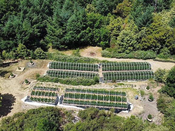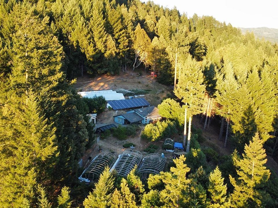 Southwest facing ridgetop 41+ acre State and County Licensed Cannabis Farm. Property features a charming remodeled 1 bedroom 1 bath home, with an open floor plan and large bonus room. New roof, new laminate flooring, and new huge solar array run this farm and house. 3 large garden areas with greenhouses, large permitted pond and private year round water source, 2 metal shops for processing, and storage containers. Very private with views of the valley below.