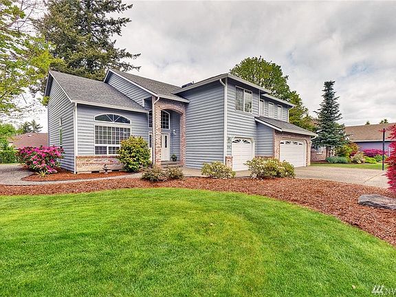 Stunning 4 bedroom, 3 bath home w/lake view sits on a park-like 1/3 acre corner lot. Enjoy private park with lake access and dock. Home has grand entry, vaulted-ceiling living room, dining room, family room, large upstairs bonus room, and large master suite w/5 piece bath. Kitchen w/stainless appliances & granite counters has casual dining area that opens thru French doors to the deck and patio for relaxing or entertaining. Large 3 car garage. Close to conveniences and golfing. A must see!