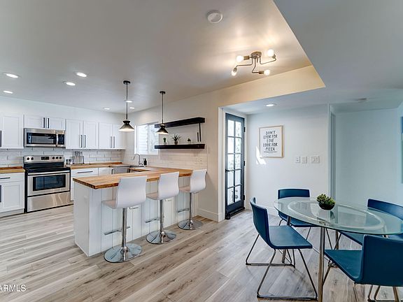 Terrific on-trend fully remodeled single level 2 bdrm/2 bath townhome in the heart of Scottsdale --just steps away from the incredible Indian Bend Wash huge greenbelt & multiple lakes! Run don't walk to view this stunner! Remodeled to the 9's!! Light, bright & airy + a 2 -car attached garage! Totally upgraded finishes throughout the home! The spacious open kitchen features white shaker style cabinets, butcher block countertops, SS appliances, a huge pantry w/ barn doors, & a spacious breakfast nook! Huge great room w/ brick fireplace & new sliding doors to private, quiet patio & backyard. New vinyl plank flooring throughout the entire home! Mins away from Old Town Scottsdale, Scottsdale Fashion Square, Scottsdale Waterfront, multiple golf courses, & hundreds of fabulous restaurants! Primary suite features a new slider to the patio also! Primary suite also boasts updated shower room, double vanity/sinks & all new California closets primary closet w/ double entry doors! Split floorplan! Secondary bathroom (super close to the 2nd bedroom) has hall access & serves as the powder room also! Brand new roof w/ warranty! All new upgraded travertine stone patio & artificial turf in the backyard!