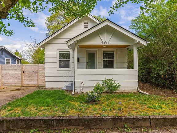 Tucked into a quiet North Portland neighborhood, this beautifully updated bungalow blends classic charm with modern convenience. The open floor plan and abundance of natural light make the whole home feel spacious and airy. The primary bedroom features vaulted ceilings, skylights, and French doors leading to the covered back deck where you can enjoy your peaceful backyard oasis. Do some gardening in the raised beds, chat with the neighbors from the covered front porch, or head just down the road to beautiful Columbia Park & Annex for a picnic or some pickleball. With a separate entrance leading to the high ceilinged and partially finished basement, there is much room for expansion or even potential for an ADU! The complete remodel in 2022 featured updates such as a new roof, new sewer line, new furnace, new appliances, new flooring, and new paint to provide you with peace of mind for many years to come. [Home Energy Score = 4. HES Report at https://rpt.greenbuildingregistry.com/hes/OR10201556]