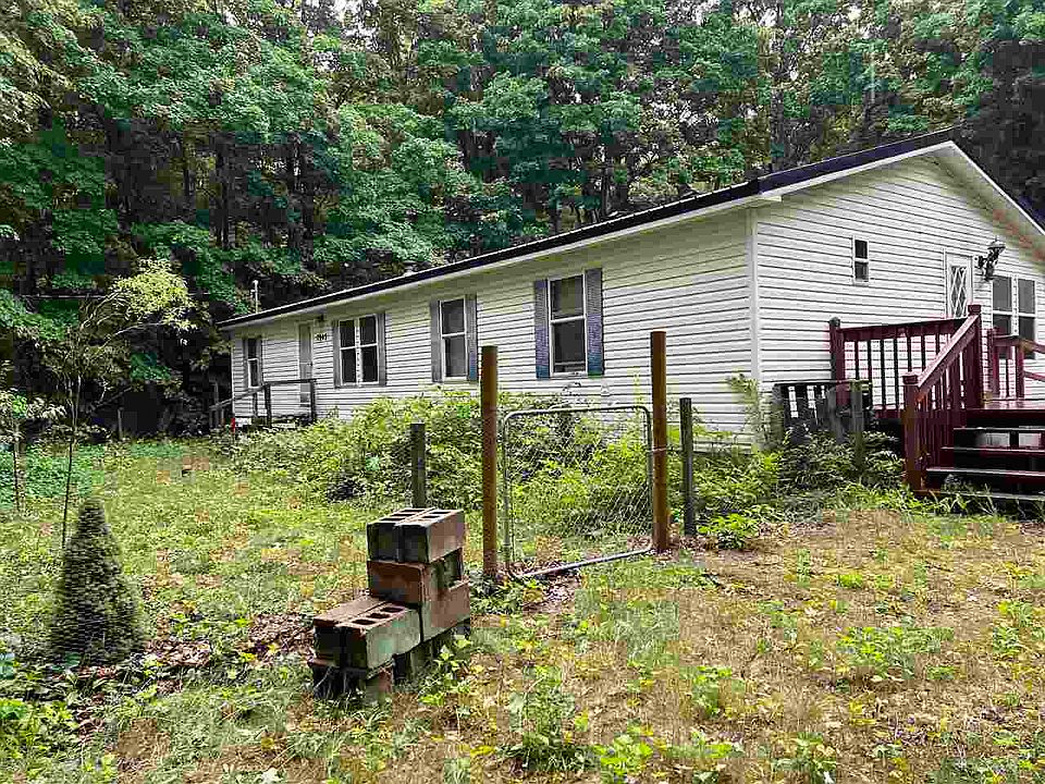 Nearly 30 acres!! Hardwood setting. 28 x 40 building/garage/workshop. One level living Full unfinished basement Minutes away from state land