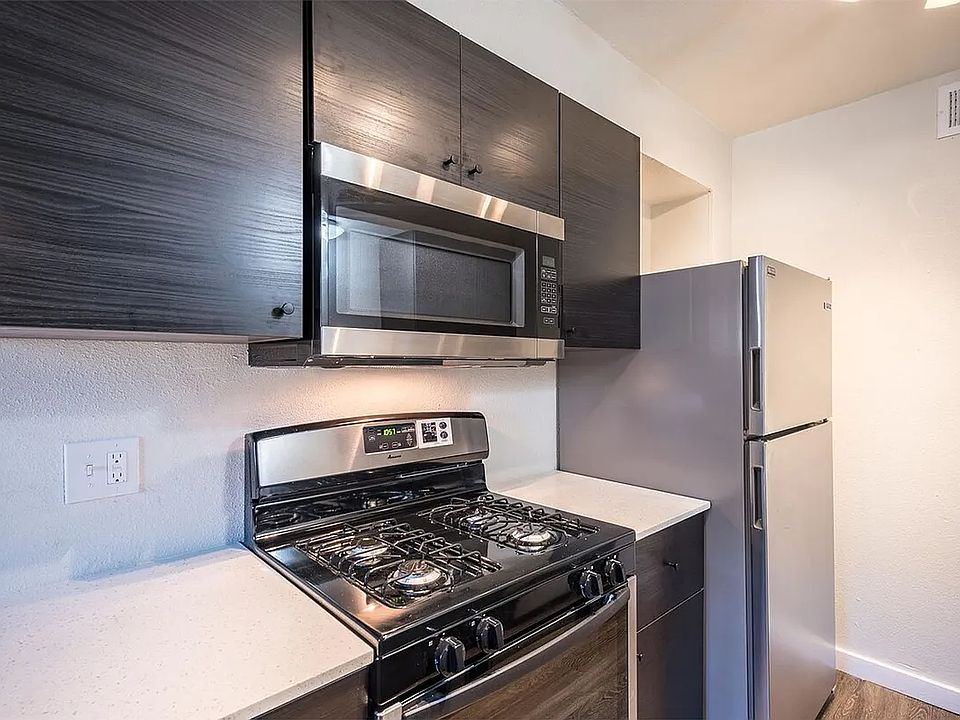 • Exterior features: Bedrooms, Convection Oven, Flexible Lease, Flooring: Laminate, Heating: Electric, One Year Lease, Online Maintenance Portal, Online Rent Payment, Open Floor Plan, Parking is included in rent. The parking lot is gated with controlled access., Remodeled Kitchen and Stainless Appliances, View Type: City