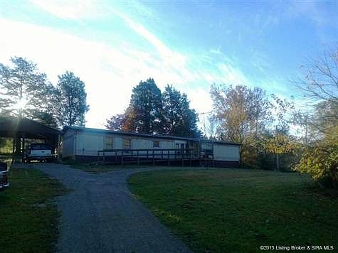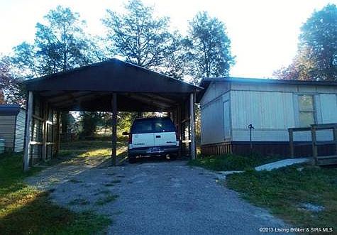 Easy access to interstate.Motivated seller. This is a 16 ft wide hm per seller! Home with potential & a beautiful setting.Located on a dead end road, very private.Roof approx. 3 yrs old. Home has covered front porch, large 1-2 car shed & 2 car detached carport. All appliances are negotiable. Possible terms.\n\nInformation Deemed Reliable But Not Guaranteed. Information provided by the Southern Indiana REALTORS® Association, Inc. © 2010 SIRA Multiple Listing Service. All rights reserved. Brokered And Advertised By: Landmark Realty Listing Agent: Lou Ann Rodewig