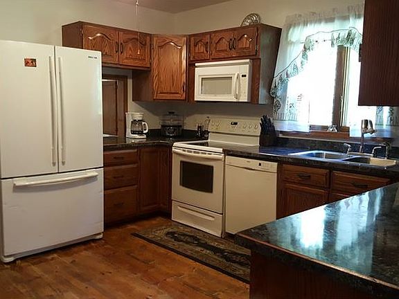 The original structure is a log home that has since been sided with an addition, 2 covered porches and attached 2 car garage. Specialty layout. One side having a kitchen, dining room, laundry area with a garden tub, LR, 2 bedrooms and 1 full bath. Addition has wheelchair ramp, kitchen, LR, bonus area, 2 bedrooms, laundry room and 2 full baths. Extra bonus is the unfinished 2nd floor. Outside boosts various outbuildings for chickens, livestock and storage. Partially wooded and open land with fruit trees. Semi private location. HW included.