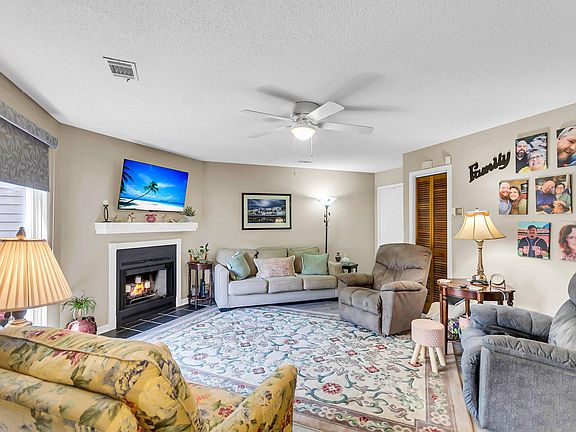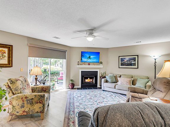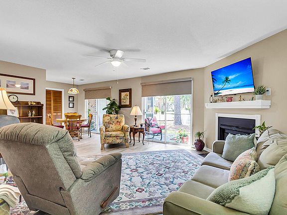 Nestled in the serene community of The Park at Rivers Edge, this charming 2-bedroom, 2-bathroom first-floor condo offers tranquil living with modern comforts. From the moment you step through the welcoming front entryway, you'll be captivated by the cozy, well-lit interior. The living area boasts a stylish fireplace, and large windows that flood the space with natural light, showcasing an outdoor patio and separate screen porch surrounded by lush greenery.The modern kitchen, with its pristine white cabinetry, stainless steel appliances, and granite countertops, is perfect for culinary enthusiasts. Enjoy your morning coffee at the delightful dining area taking in the views of the pond and fountain. The spacious bedrooms are designed for relaxation, featuring ample closet space.Start your day in the neatly arranged bathrooms equipped with all the essentials for comfort and convenience. Step outside to the picturesque screened porch or take a stroll around the tranquil pond with a central fountain. Enjoy community amenities such as the outdoor swimming pool, tennis courts, and playground. Whether you're lounging by the pond or exploring the nearby park areas, there's always something to enjoy. All of this and the kitchen refrigerator and family room TV will convey
