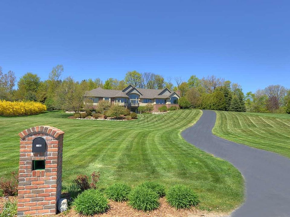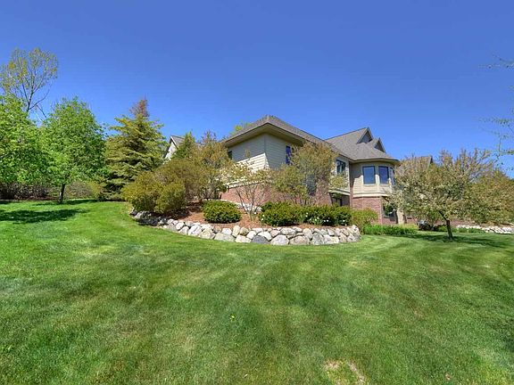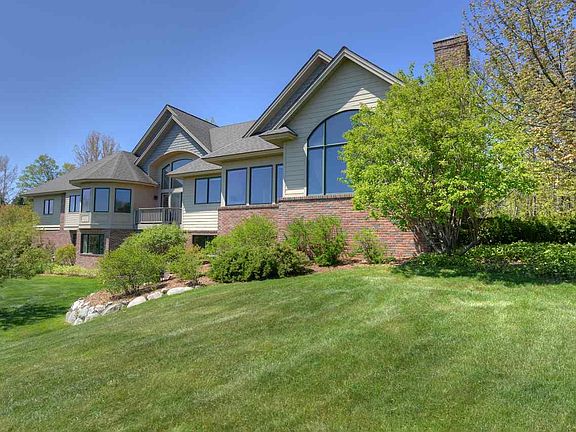 This stately custom home features breath-taking sunrise views of East Grand Traverse bay from nearly every room. You will love the inviting indoor pool area which is fully climate controlled with its own furnace and a powered pool cover. A spacious entry welcomes you into the home next to a cozy parlor or sitting room with a gas fireplace. You will soon find the chef's kitchen with expansive granite-topped work spaces and an Italian-made Verona gas stove. The living room is brightened by large arch-topped windows through which there is a spectacular view of the bay. A second gas fireplace warms the back side of the living room. An oversized bay window lets you see the water when you first awake in the master bedroom. The master bath has a lovely tiled shower, a freestanding bathtub, marble countertops and a huge closet space. The lower level has a librarian's library and an office space that could easily become a media center or exercise room. Ample storage abounds throughout. Around the exterior of the house are gorgeous flower gardens to brighten your summer days. All dimensions are approximate and buyer to verify all measurements and details. Pool area included in finished area calculation.