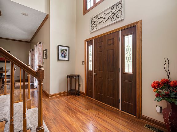 Beautifully updated, custom built, 3BR, 3.5BA home on half acre, wooded, corner lot in Plainfield schools! Elevated ceilings & hardwood floors throughout open main floor. Multiple living spaces for any lifestyle. Updated kitchen brags an island w/breakfast bar, granite countertops, & plentiful cabinets. The primary suite, a haven with vaulted ceilings, hardwood floors, huge walk-in closet, whirlpool tub, & fully tiled shower. Spacious deck w/built-in hot tub invites outdoor relaxation. Finished basement w/hardwood floors, an expansive living space, & bonus room/possible 4th sleeping quarters. PLUS a 2.5 car garage, basketball hoop. New in 2022: HVAC, sump pump, fridge, flooring, light fixtures. New in 2020: roof, garage doors.