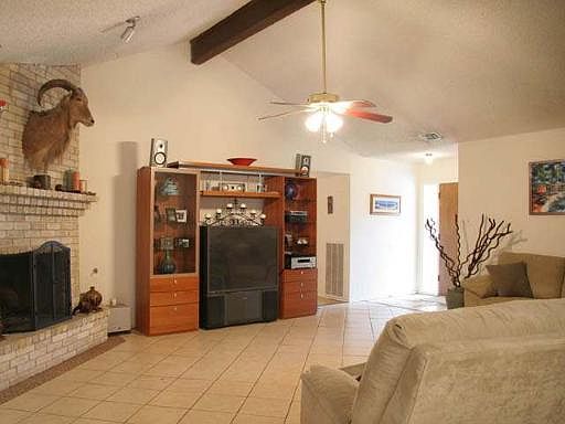 PC1471. Wonderful one story home with lots of upgrades! Open floorplan. Recently remodeled kitchen features granite counters, updated appliances and tile floors. Living room has a brick fireplace and is wired for surround sound. Master bedroom and guest bedroom with walk-in closets. Updated bathrooms including vanity lighting. Ceiling fans. Landscaped with St. Augustine grass and has a nice Travertine covered patio to relax on. Recently updated carpet.