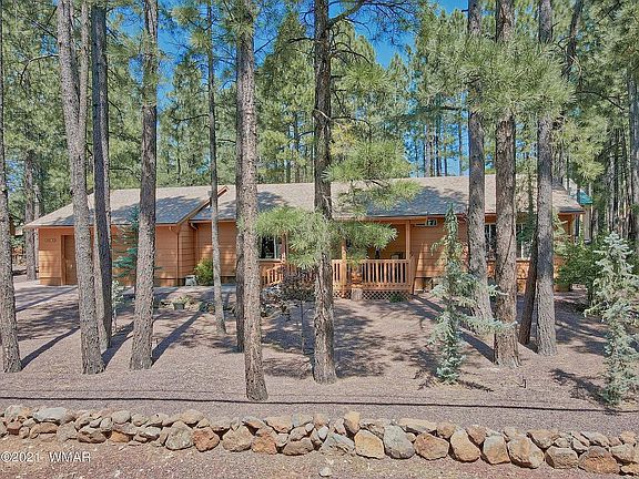 TURN KEY, REMODELED, RUSTIC CABIN in Pinetop Country Club. This immaculate cabin features 2 bedrooms plus an office and two baths. (Could be a third bedroom). Vaulted T & G ceilings with skylights. Kitchen features granite counters, new tile flooring throughout. Remodeled baths, wine storage, New Roof and new paint outside. Home is being sold turn keywith furniture, decor, linens, dishes, kitchenware, patio furniture. Close to Golf, Hiking Trails, National forest, Skiing. No Sight Unseen offers.
