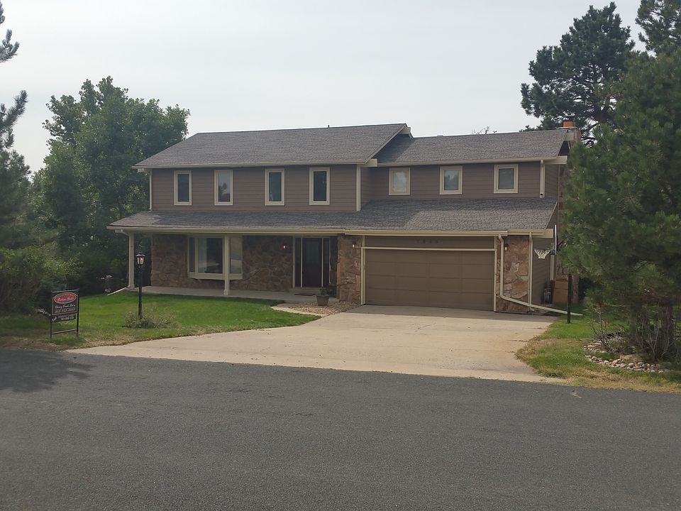Experience the Pinery in Parker.... SITUATED ON A 1/4 ACRE LOT WITH MATURE TREES DECK W/ BOSE SPEAKERS & PATIO, THIS TWO-STORY HAS A WALKOUT BASEMENT, MASTER SUITE W/ HARDWOOD FLOORS & JETTED TUB. UPDATED KITCHEN W/DOUBLE OVENS, GAS COOKTOP, CHERRY CABINETS, GRANITE TILE COUNTERTOPS. STONE FIREPLACE IN FAMILY ROOM AND BASEMENT. OPEN FLOOR PLAN GREAT FOR ENTERTAINING. WOOD FLOORS IN ENTRY FAMILY ROOM & KITCHEN. BASEMENT IS FRAMED JUST NEEDS DRYWALL AND FLOORING. LAUNDRY ROOM ON UPPER LEVEL PLUS SET UP FOR LAUNDRY IN BASEMENT. DON'T MISS OUT ON THIS BEAUTIFUL HOME WITH VIEWS.