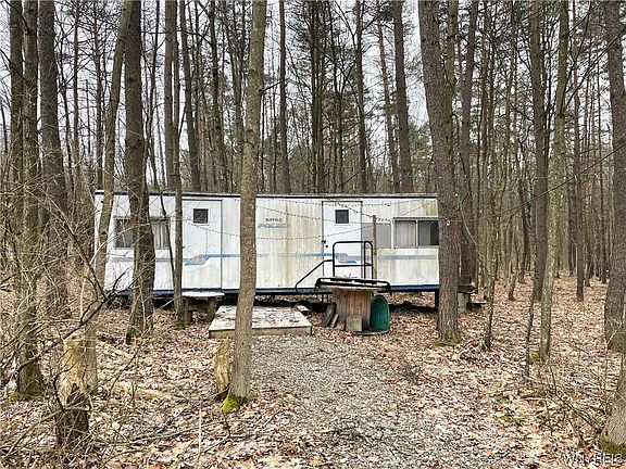 This seasonal property on 47 acres has plenty to offer. Featuring 2 mobile homes on site, one with three plus bedrooms in one. The second home has a spacious one bedroom featuring its own electric heat and AC. Plenty of room for family get togethers or a hunting compound, or a place to start your own outdoor farm. Updates are a new metal roof, rear deck, brand new breaker box at the pole, water holding tank with pump, woodstove with stainless steel 7 inch pipe, concrete stairs and new handrail entrance. Assorted hardwoods include ash, maple, oak logged 26 years ago. Situated on a lovely wooded lot with large pond approx 1/2 acre that has been stocked with large mouth bass and 6 grass carp dock included. Plenty of quad trails exist on this property the existing tree stands can stay, plenty of cleared space for tents or campers.