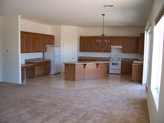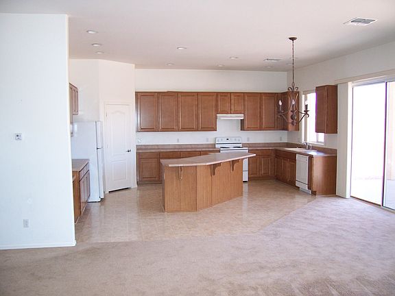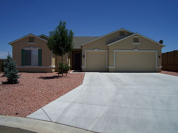 Great home on large premium lot in highly desired Pronghorn Ranch in Prescott Valley. Near green belt and city park. 4 bedroom; 2 bath; 2,200+/- square feet; bright and cheery; spacious 10-foot ceilings throughout. Open concept, Great Room, Sedona Model, lots of light, many windows. Dream kitchen: large island, upgraded kitchen cabinets, walk-in pantry. Split bedroom plan. Large Master Suite with bay windows; roomy walk-in closet. Master Bath with separate bathroom counters / mirrors / sinks; walk-in shower; separate large bathtub. Utility room. New 18-inch porcelain tile in Kitchen, bathrooms, foyer, and utility room. The interior is newly painted. Oversize 3-car garage; huge 3-lane driveway. Stucco exterior. Low maintenance and low-water landscaping. On cul-de-sac. Great Mingus Mountain