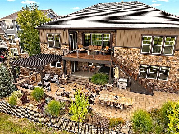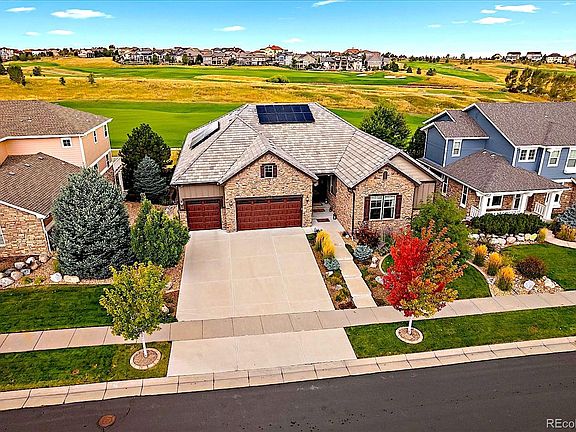 Amazing price for this stunning home!This ranch style home offers a lavish blend of elegance and comfort, boasting 5 bedrooms, 4 bathrooms, and an impressive 5,776 square feet finished of living space.Step inside and be greeted by an inviting open-concept design, flooded with natural light, that seamlessly merges the living, dining, and kitchen areas with an additional private formal dining room. The gourmet chef's kitchen features granite countertops, stainless steel appliances – including a double oven, butlers pantry with beverage fridge, and a spacious island perfect for culinary adventures.Working from home is a breeze in the stately study with large built-in shelving and wainscoting. Retreat to your master suite, a sanctuary of tranquility featuring a spa-like bathroom and a walk-in closet. Two additional bedrooms provide ample space for family or guests on the main floor. The expansive fully finished walkout basement is ready to entertain with a wet bar and beverage fridge, plus A/V and home theater capabilities.Reach all your fitness goals in the custom fitness room with beautifully finished cedar walls, mirrored wall, fitness room rubber flooring, and sauna. The backyard is an entertainers dream where an authentic wood-burning pizza oven, gas fireplace, Jacuzzi with dry below decking, and seating wall await your gatherings.The cherry on top? The breathtaking views of the golf course that will make every day feel like a vacation. There are so many more beautiful upgrades to mention including custom cabinetry, motorized shades, motorized awning, pergola shade, built-in TVs, Jellyfish lighting around roof, and owned solar panels plus a 3 car garage with epoxy flooring and built-in storage. Become part of the prestigious Blackstone Country Club, where you'll enjoy access to a huge clubhouse, golfing, dining, pools, fitness center, and much more. With top-rated schools, nearby amenities, and a friendly community, this is more than a home; it's a lifestyle.