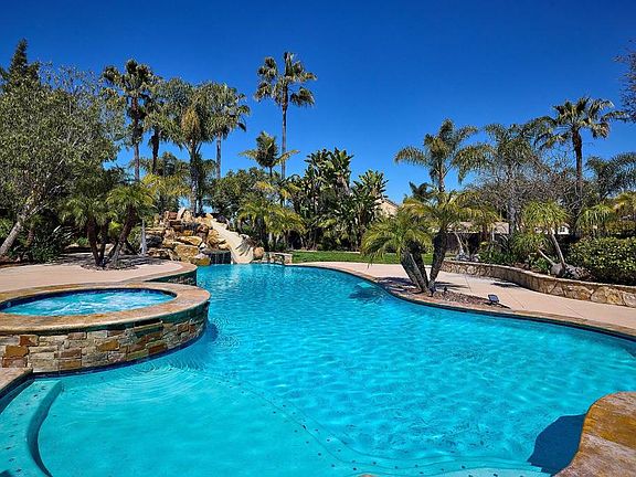 Absolutely stunning cul de sac home loaded with upgrades in the prestigious community of The Ranch! Located on a sprawling .63 acre lot, this casually elegant residence offers the perfect floorplan with 5 bedrooms, an office, and expansive bonus room. The designer done kitchen was remodeled to perfection with full height cabinetry, quartz counters, custom oversized hood, and top of the line appliances including a Thermador 60” double oven/stove and Subzero refrigerator. The stunning kitchen seamlessly flows into a wonderful dining area and fabulous family room. On the other side of the kitchen is a private office ideal for those working from home. It features loads of built in storage and a slider to the backyard. The luxurious primary suite features dual sinks, a vanity area, soaking tub, and a huge walk in closet. The upstairs includes three more generously sized bedrooms, two bathrooms, a charming balcony, and a bonus room that is perfect for an upstairs family room or play room. Step outside to the magnificent resort like yard with every amenity imaginable – sparkling pool and spa with waterslide, sunken fireplace seating area, built in BBQ and bar, covered patio, cozy firepit, outdoor shower, and massive grassy play area. A bedroom with direct access to the yard and redone bathroom are conveniently located on the main level. Other features of the home include owned 9.4KW solar on NEM 1.0, gorgeous wood floors, new stair railings, redone powder room, 3 car garage, and upstairs laundry room. Students attend top rated Encinitas/San Dieguito schools. Just minutes to beautiful beaches, delicious restaurants, fantastic shopping, and world class golf. Truly Southern California living at its best!
