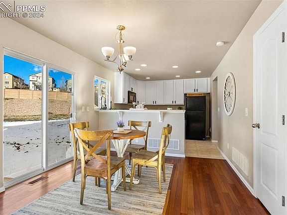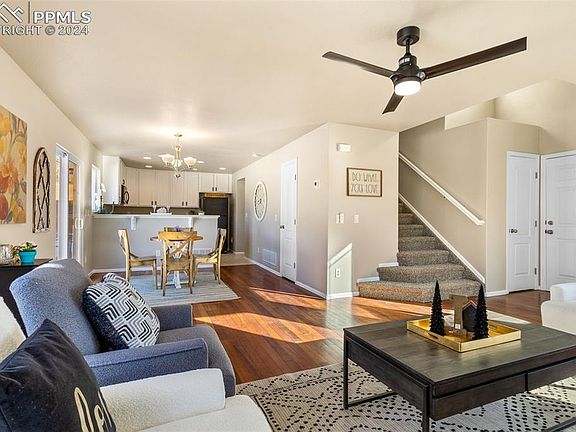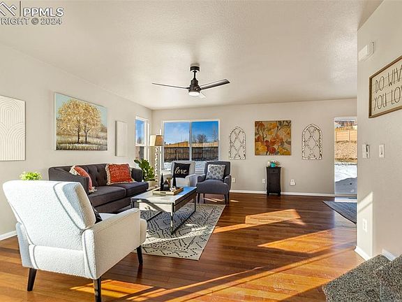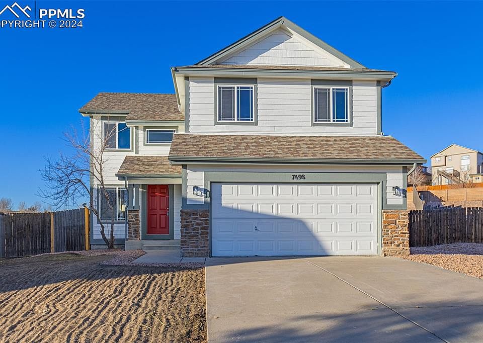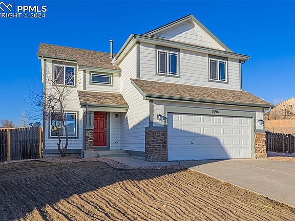 Happy Holidays Home Shoppers! This is a Black Friday Special that must be seen to be fully appreciated! The fresh paint and end of cul-de-sac lot make for lots of curb appeal. The location is convenient to Ft Carson, Peterson, and some outstanding food delivery options just minutes away. The lot is HUGE (nearly a third of an acre!), and gives buyers endless options- create the basketball court you've always wanted... the workshop that will be the envy of all your friends... give your dog the backyard that will make them love you forever... or use the access to the right of the garage to build your very own garage-mah-jal. With a lot this large and flat, let your imagination run wild! The floorplan features a wide-open Main Level that has a large Great Room, as well as a spacious Dining Area- both offer engineered Hardwood Floors, a walkout to the huge backyard, and new Modern black lighting. The Kitchen has a large pantry, as well as a counter bar that seats 3. The Kitchen also features 42" cabinets with new hardware, and a full suite of appliances that will be included with the home, along with the Washer and Dryer! The Upper Level has 4 Bedrooms, including a Master Suite with a large Walk-In-Closet and an attached Bathroom. The Upper Level also offers a full-secondary bath, brand new carpet and an updated lighting package. Welcome Home!