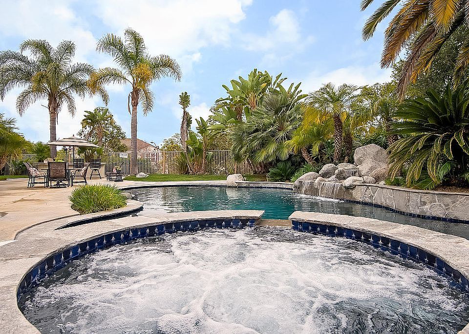 Large, private two-thirds acre lot on a quiet cul-de-sac. Home lives like a single story with the living areas and three bedrooms, including master, located at the entry level. Upstairs has two additional bedrooms and a spacious loft, which is great for a multi-generational household, someone who works from home or a family who needs a fun space for the kids. Downstairs includes a large game/play room/office (converted from the 4th and 5th car garage), perfect for kids and adults alike with separate access. The options are endless for this versatile floor plan. Master suite features French doors leading to the backyard & a beautiful custom designed 275 sq ft master closet addition (built with permits). Closet features large center island for extra storage, gorgeous dark wood built-ins for shoes and accessories, as well as cedar planking to protect high-end clothing. The entry level bedrooms are spacious with attached baths. French doors throughout home lead to the beautiful outdoor space where one can entertain on the large patio area by the beautiful pool and spa with rock waterfall feature. Yard also includes built-in bar/BBQ and large grass area. Located near top rated Encinitas schools including Olivenhain Pioneer Elementary, Diegueno Middle School, and La Costa Canyon High School.