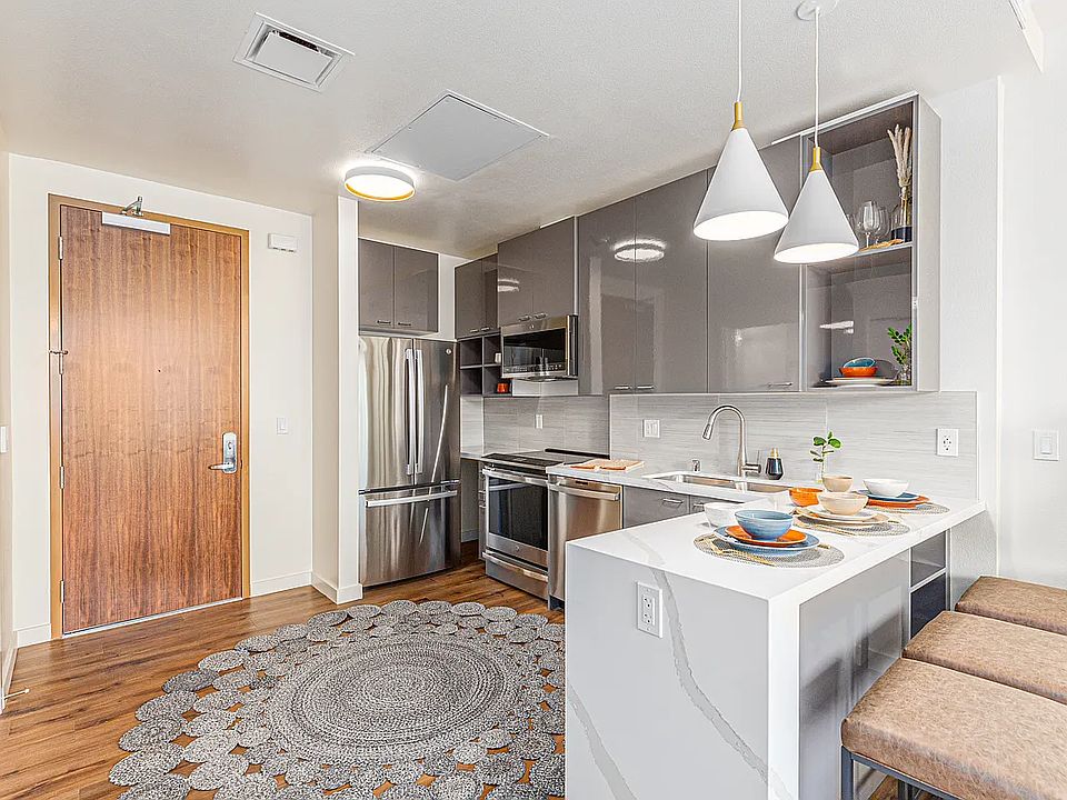 - Exterior features: $0, Balcony, Barbecue, Bicycle storage, Building-wide Wireless, Convection Oven, Game Room, Heating: Electric, High-speed Internet Ready, Internet included in rent, Lofts* select units, More Than One Year Lease, No Utilities included in rent, On-Site Management, One Year Lease, Online Maintenance Portal, Online Rent Payment, Permitted Parking Garage parking available (Monthly Charge) Limited spaces available, Pet Park, Picnic Area, Putting Green, Shuffleboard Court, Spanish Speaking Staff, TV Lounge, View Type: City, View Type: Golf Course, View Type: Mountain, View Type: Water