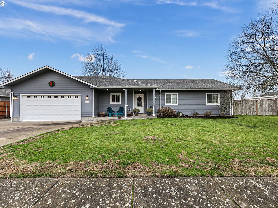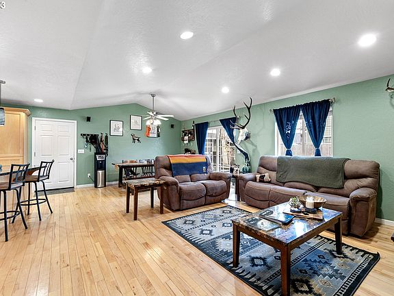 Discover this charming 3 bedroom, 2 bathroom home on a huge lot with RV parking, oversized & extra deep garage with detached shop/3rd garage. This home features hardwood flooring throughout the living spaces, updated bathrooms with granite counter tops & tile floors and a large master suite with walk in closet. This quality built home was well thought out with maple cabinets, vaulted ceilings and an open floor plan concept perfect for functionality and entertaining, both inside and out. Leading out of the living area is a 24'x12' covered patio area to be enjoyed all year round. Large backyard with dog run, wired shop and plenty of gardening area with apple tree and grapes, fully irrigated. This is a must see home !! Exterior painted in summer of 2023.