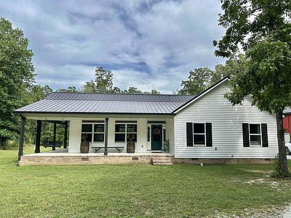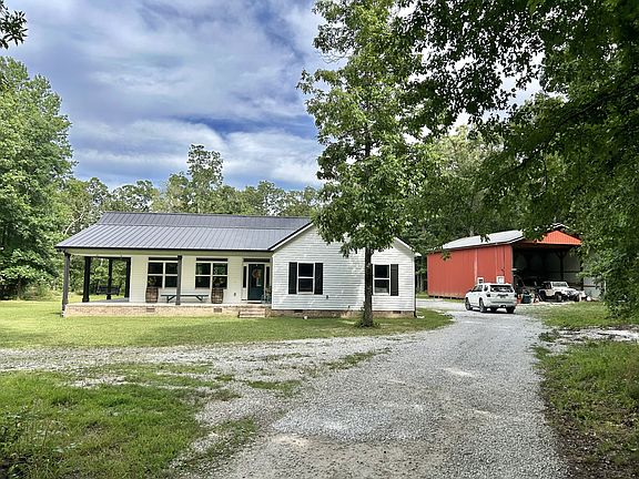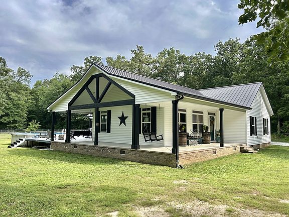 Charming 4 bed, 3 bath Farmhouse on 11+acres with an attached carport, detached utility building, wrap around porches, fenced in area for fur babies or livestock, and walking or ATV trails throughout the 11+acres!! This adorable house features an open floor plan with tall vaulted ceiling in the living room/ dining area with recessed lighting and a stone gas fireplace!! The whole house has an abundance of windows for plenty of natural sunlight and beautiful outside scenery!! The kitchen has custom cabinets with a built in pantry and gorgeous granite counter top. The island is 11ft long!!! Plenty of room for the whole family to sit and eat or congregate!! The detached utility building is 48x30 and 16ft tall with electric and water. All utilities are buried underground!! The roof is a metal standing seam roof and should last a lifetime!!