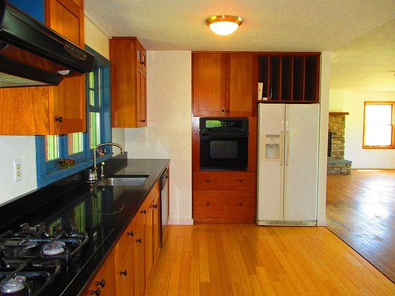 Views views and more beautiful views overlooking the valley! 3+ bedroom, 3 bath home on 3.5 +/- acres with 3 levels of living. The main floor has 2 bedrooms with walk in closets, full bath, living room with wood burning fireplace and doors leading out to the deck overlooking the valley. The kitchen with granite counter tops and locally custom made mahogany cabinets and bamboo wood floor is off the living room/dining room for an open floor plan. Also on the main floor is an extra room for office/bedroom or music room! The laundry room is off the kitchen and plumbed for an extra bath if so desired. The upstairs features the huge master bedroom with full bath, walk in closet and sliding doors that open up to a private balcony. The basement has 2 sections one that is finished with a large family room, full bath with shower, walk out to back yard garden and chicken coop and the other side is a large room that could be finished for extra living space. Tons of storage throughout! The views are outstanding and the long paved driveway with woods on one side and pasture on the other gives the privacy of being on your own mountain! Many perennials around the house and a fenced in garden for your veggies! Bring the chickens for fresh eggs in the morning!