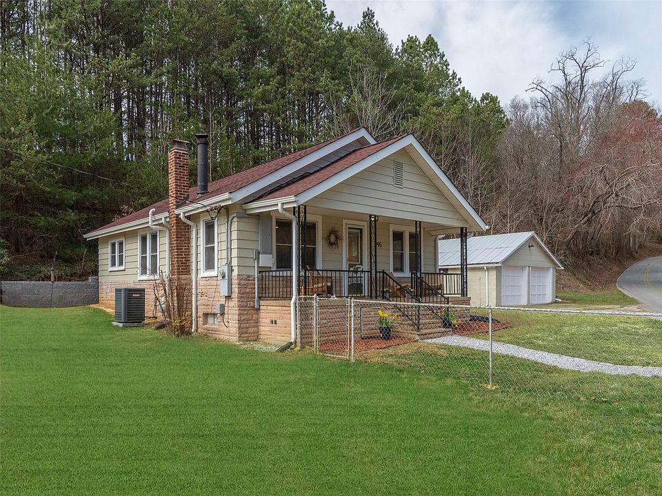 Stunning bungalow close to Waynesville or Asheville! With extensive renovations just completed in February 2023 this home is full of vintage charm and endless upgrades. Renovations include a breathtaking eat-in kitchen, stylish bathroom, new flooring, refinished hardwoods, fresh paint inside and out, retaining wall, radon mitigation system & MORE. Just over half an acre of gentle laying land with a partially fenced yard, storage shed and playground. Plus a large detached 2-car garage perfect for workshop space or storage. Located off of Exit 31 of I-40 this property offers a quaint rural vibe with convenient paved access on a state maintained road. Affordable opportunity for mountain living without the worry of renovations!