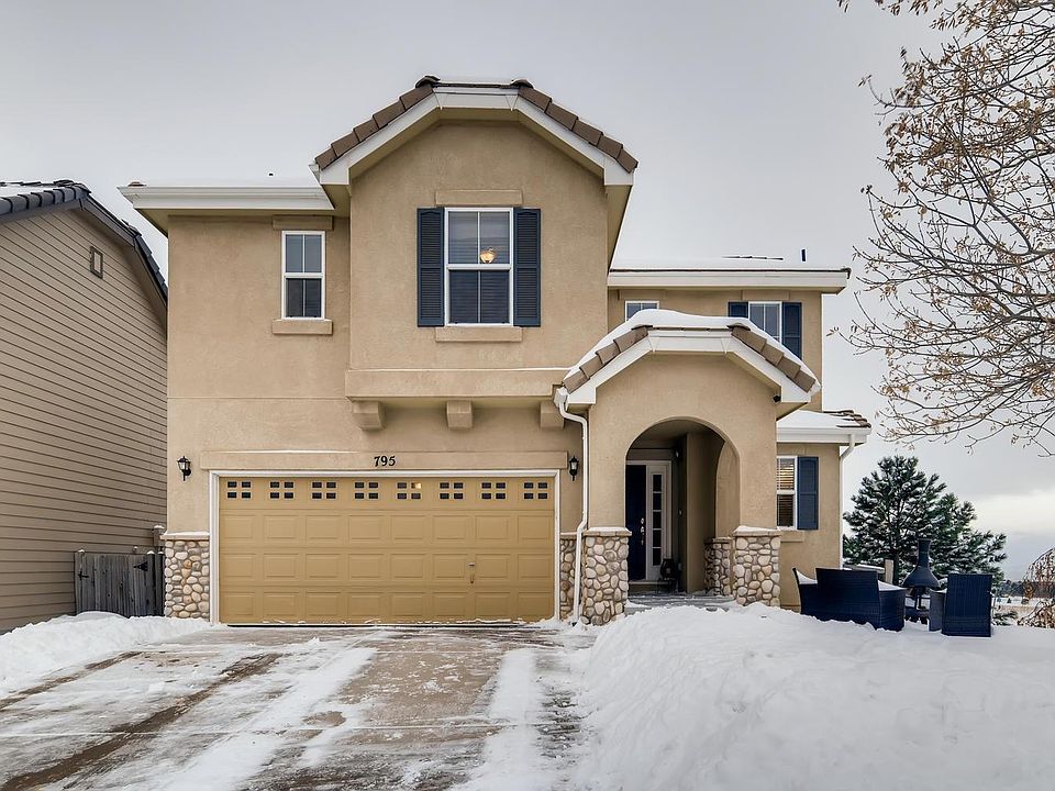 Come see this adorable 2-story home on a quiet cul-de-sac with fabulous mountain views! The main level features an open kitchen, dining area with hardwood floors, and cozy family room with walk-out to the rear patio. The kitchen has stainless steel appliances, abundant counter and cupboard space, and a pantry. Upstairs is the master suite with adjoining 5-pc bath, loft with built-in bookshelves, and two bedrooms with another full bath. Great curb appeal with front flagstone patio entertaining area, stucco and stone exterior, and durable tile roof. Attached 2-car garage, central air, and D-20 schools!