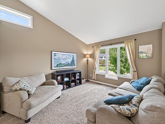 Beautiful 4BR/3BA home featuring custom cabinetry, a large center island, vaulted ceilings, and an open, bright layout. The kitchen includes white cabinets, hardwood floors, stainless steel smart appliances, spacious dining area, large pantry, with a gas range. A cozy office/loft overlooks the living and dining areas. The upper-level bedroom suite offers a private bath and two walk-in closets. The newer lower level features a large family room, projector, spacious bedroom, and generous storage space. Enjoy a walkout design with a deck overlooking a private, wooded backyard and fire pit. Also has a chicken coop! Spacious foyer, large 3-car garage, multiple walk-in closets and so much more!