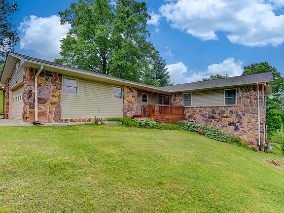 Come see this beautiful, one-story stone home on an acre site with mountain and rolling fields all around.Extensive interior remodeling in 2014. Large eat-in kitchen with island, Jenair cook top, oven, stainless steel appliances and expansive cabinets.A living room, family room, three bedrooms,two full bathrooms, including a master en suite complete the first floor.The basement has a full bathroom, remodeled in 2017. This house has an oversized one car garage with entry to the kitchen as well as separate laundry room and a double door garage under the house, opening to the basement, for boat or larger vehicle storage. The living room is warmed by a stone hearth and gas fireplace.