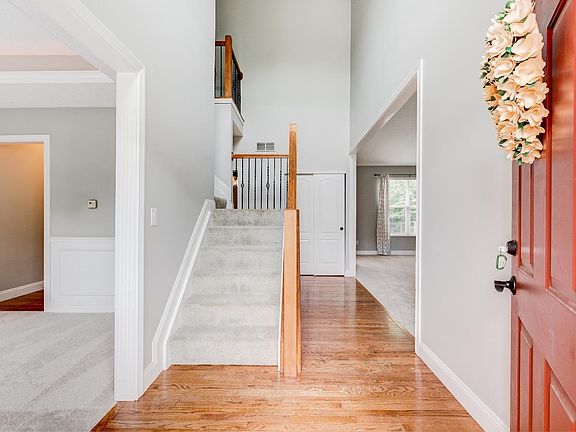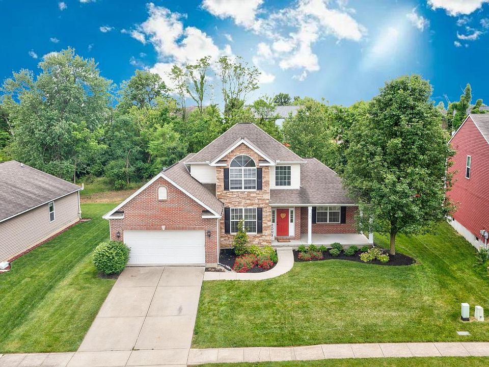 Welcome to this stunning 4 bedroom, 2.5 bathroom Custom Home with Curb Appeal galore! Featuring 2-story entry way, First floor Primary Bedroom with adjoining bath & walk-in closet, Vaulted ceilings in Family Room, wood floors & fresh paint! Enjoy your fenced in lot while shooting basketball on the rear concrete court or sit & stay a while on the covered front porch! No HOA! New windows and new roof