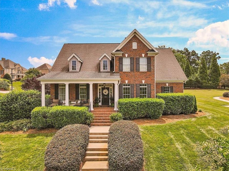 Gorgeous brick home, built by Jonathan Lee, in the highly desirable Brookberry Farm community of Winston-Salem! 5Bedrooms, 3.5Baths! Perfectly situated on corner lot with tranquil lake views!! Inviting entry, rocking chair front porch, main level office! Beautiful hardwoods, elegant moldings & sun-drenched spaces! Warm gas fireplace & built-ins in living room! Granite countertops & stainless steel appliances in kitchen! Main level primary suite with jetted tub & separate shower! 4 additional upper level bedrooms! Plenty of room for future expansion in unfinished basement! Oversized 2-car basement garage! Relaxing patio overlooking lush backyard! Walk to the community pool! Brookberry Farm offers exceptional amenities-ampitheatre, historic barn, pavilion, clubhouse, lakehouse, aquatic center, gym, playground, tennis court, bocce court, volleyball court & sidewalks! WELCOME HOME!!