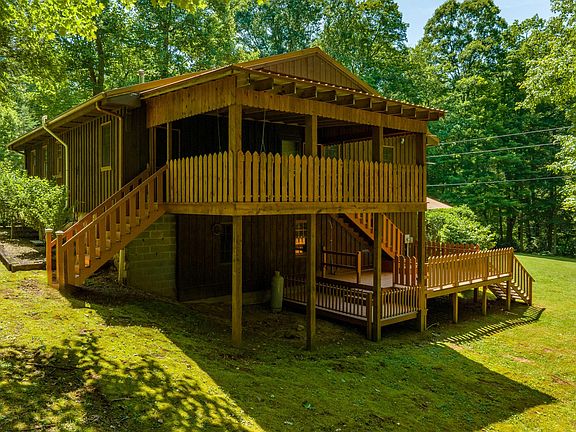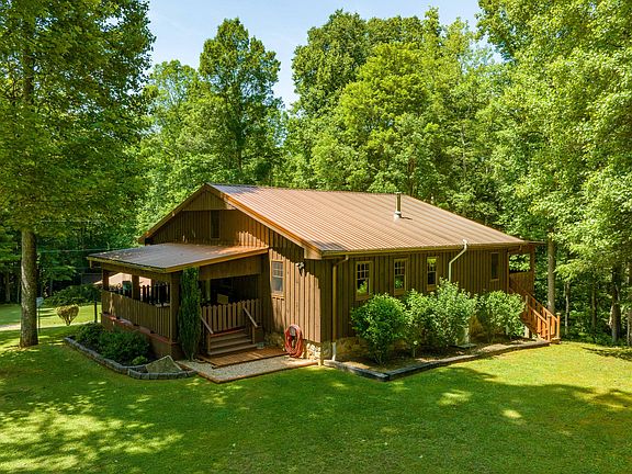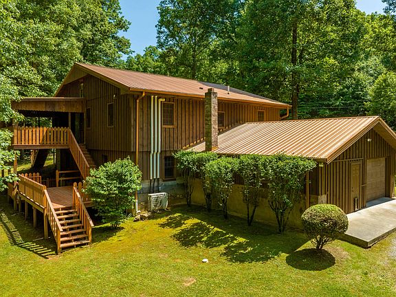 795 Hiram Clark Road is located on a private, partially wooded 4.94 acres. This property has a year round creek and backs up to Cherokee National Forrest. As you approach the home you'll notice the breezy covered porch with a mountain view. Walking in through the front door take note of the open concept floor plan with 10 foot ceilings and the craftsmanship of the surrounding rustic wood architecture, exposed beams with show stopping built in shelving and hidden cabinetry throughout the home. The main level features 2 bedrooms and 1 bathroom with a custom tiled shower. The kitchen is large with plentiful countertop prep space and cabinets. Right off the kitchen is the wood burning stove which is efficient in heating the entire home in the winter. The laundry room is also featured on the main level with an abundance of storage. The back porch is off the dinning room and has exterior access with steps leading down to an uncovered porch which then leads down to the backyard. Step downstairs into the finished basement, you'll notice a large open recreation room along with 3 additional rooms/bedrooms (2 without windows). There is also an additional bathroom with a 2 person soaking tub. The basement has walk out access through the garage and unfinished workshop as well. Seller has taken tremendous care of their home from creating walking trails through the woods down to the creek to adding mini splits throughout the home for heating and cooling. Seller has also hooked up Starlink for internet connection. The well is shared with the only other neighbor Hiram Clark, but each home has their own pump, which was just replaced within the past few months. The well has a UV treatment system which is serviced by Culligan for $30/month. Remaining are 2 storage sheds and a carport for additional covered parking. Buyer/buyer's agent to verify all info