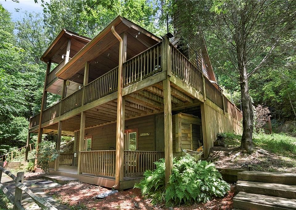 Escape to your private mountain retreat! This beautifully maintained **3 bed, 3 bath cabin-style home** sits on a **wooded 1-acre lot** and is a thriving **fully furnished short-term rental**-ready for immediate income or your personal getaway. Step inside and fall in love with the **warm wood siding**, **tongue-and-groove cathedral ceilings**, and a **cozy wood-burning fireplace** that anchors the open living space. Enjoy seamless indoor-outdoor living with **three tiers of spacious decks**, each offering breathtaking views and the peaceful sounds of a **large, flowing creek**-which you **own the rights to use and play in**! Soak your worries away in the **private hot tub on the porch**, surrounded by nature and serenity. Every inch of this home was designed for comfort and relaxation, from the well-equipped kitchen to the restful bedrooms with wooded views. Located in a desirable vacation market, this cabin is **turnkey and busy**, with a strong rental history and everything you need to continue hosting guests. Whether you're looking for an investment or a personal haven, this property checks every box. **Don't miss your chance to own a slice of Appalachian paradise-schedule your showing today!**