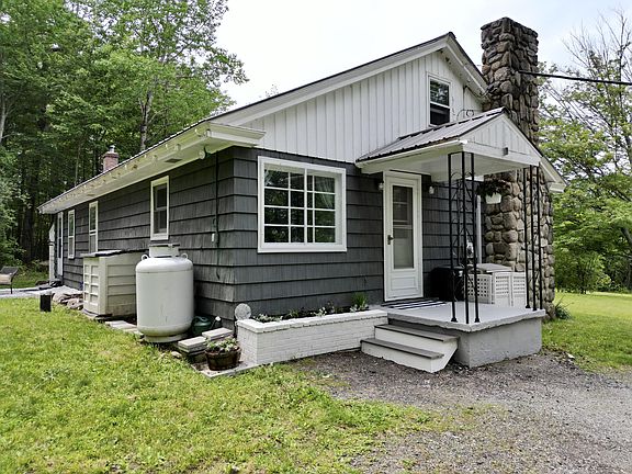 Move in ready, 3 bedroom, 1 bath ranch, just waiting for you! No room was left untouched when updating this sweet home. The kitchen and common living area are open concept, with a breakfast nook and large island in the kitchen, and a stone propane fireplace to cozy up by in the living room. There is heat pump that primarily heats the home, allowing great savings on oil as the Hot Water Baseboard system is used more as a backup and to heat the water. The bedrooms all have new flooring and fresh paint, and there is a small nook that is a perfect spot for a desk. Head up the stairs off the living room to find a full attic for all of your storage needs. Enjoy the yard from the patio made of pavers and rock- the large trees have been trimmed back to allow for more sunshine and less maintenance on this spacious 3 acre lot. Bring your suitcase because all this home needs is you!