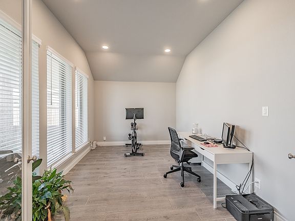 Private office for working from home. Expansive primary suite with spa-like bath, dual vanities, and soaking tub. Three additional bedrooms, one with private bath. Covered patio for outdoor living!