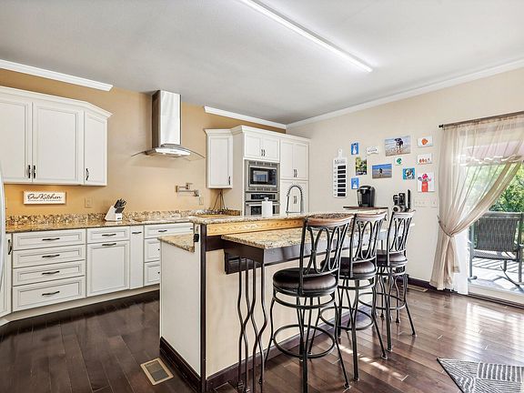 - Features: Walk-Out Access, Laminate Flooring, Kitchen Island, Eat-in Kitchen, Wood Cabinets, Crown Molding