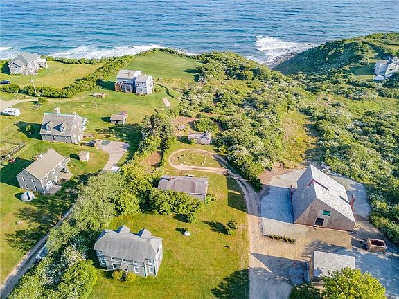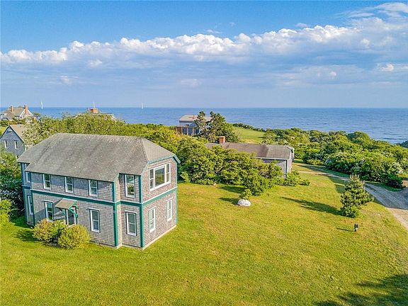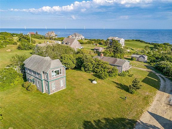 Enjoy beautiful views of the Atlantic Ocean from this waterfront 2.47-acre property located off Mohegan Trail, just a short walk from the Painted Rock and Vail Beach! The three-bedroom, two-bathroom ranch-style home is simple and comfortable. The first floor includes an eat-in kitchen and dining room with full bath and utility room. Upstairs you will find three bedrooms, one which is oversized and includes a cozy living room area, and another full bathroom. The deck from the second floor boasts beautiful views, including the sunset over Bit o’ Heaven in the summer months. Additionally, there is a large accessory building with one bedroom and two baths for overflow guests with space for an office, rec room, and storage area. The current owners have also left the structure of a large shed on the property to allow for rebuilding on the same footprint. Make this your perfect Block Island getaway!