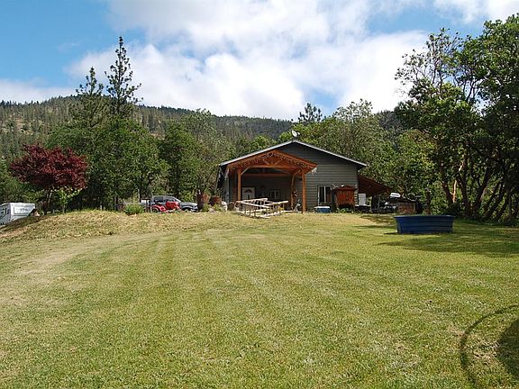 This is a huge garage/shop with tall & standard roll up doors. None of the appliances or cabinetry is included. Located on 5.52 acres, part pasture, part wooded. Plus a nice barn with a workshop area and covered pens, and a separate hay barn. The owner states they have a high producing well. The property is really nice and ready for your new home, well & septic installed, power to site.