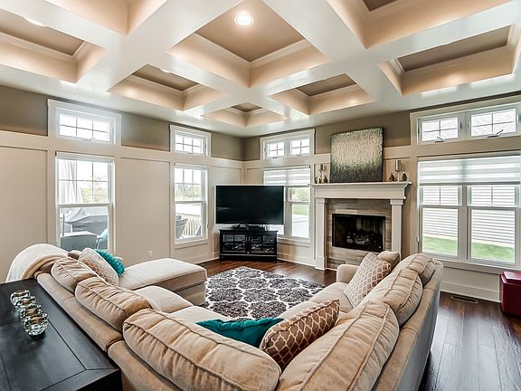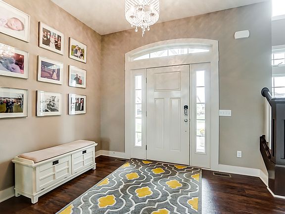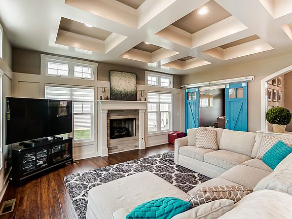 Beautiful Craftsman Style home with 4 Bedrooms, 3 1/2 Baths and split bedroom floor plan. Upon entry you will notice the open main level with stunning coffered 10' ceilings in living room and kitchen. The attention to detail with expansive windows to the ceilings allowing an abundance of natural light. Kitchen has custom cabinets and over sized island/breakfast bar & all counter tops are granite, all SS appliances are included. Dining room w/barn doors and living room has extensive woodwork and a gas fireplace w/stone for cozy nights. The master suite on main level has a large master bath with walk-in tile shower, garden tub and walk-in closet with 2 tiers up for clothing. The 2nd level offers 2 bedrooms & 1 full bath. The lower level includes a family rm, rec rm, theater rm w/projector, 2 speakers mounted on back wall & screen will stay. Also is a 4th bedroom w/built-in shelving and desk area. A full bath in LL as well. The storage area has a radon system in place. Beautiful spacious backyard with all new 225' of white vinyl fence and professional landscaping! The deck is perfect for entertaining and cooking out. Garage is equipped w/Tesla Electric Vehicle Charging system, stack Samsung washer & dryer (negotiable). Home is also equipped with Simplx Security System. Tuscany Subdivision has Pufferbelly Trail to walk with views of undeveloped wetlands.