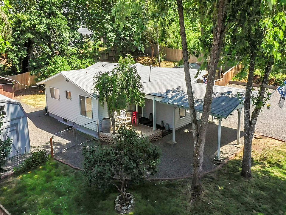 Introducing your private oasis nestled amidst the breathtaking beauty of nature! This wonderful 3-bedroom, 2-bathroom sanctuary sits on a generous 0.4-acre lot and offers mesmerizing mountain views. With an array of desirable features and ample space, this property truly has it all. As you approach, you'll appreciate the convenience of a large parking area, including RV parking and a carport to accommodate all your vehicles. Additionally, there is an outbuilding on the premises, boasting large room and a small shop or storage area, perfect for pursuing hobbies, storing your cherished belongings, or creating that private getaway. Another substantial outbuilding provides ample space for your tools or additional storage needs. Step inside, and you'll be greeted by a beautifully remodeled living area and bedrooms, exuding comfort and style. While some flooring and kitchen updates are required to complete the remodeling process, you have the opportunity to personalize these spaces to your exact taste and preferences. The interior also features an inside laundry area with a half bath for added convenience. The master suite offers a tranquil retreat with a full bath, ensuring privacy and relaxation. The stainless appliances in the kitchen add a touch of modernity, and the pellet stove provides warmth and coziness during the colder months. The allure of this property extends beyond the main house. Step outside onto the deck, which is covered by a spacious square gazebo, creating the perfect setting for outdoor entertaining or enjoying the serene surroundings. Picture yourself unwinding in the included spa, surrounded by the beauty of mature trees that add an element of tranquility to the landscape. Don't miss the opportunity to make this extraordinary property your own. With its breathtaking mountain views, ample parking, versatile outbuildings, and a host of desirable features, this home offers a truly exceptional living experience.