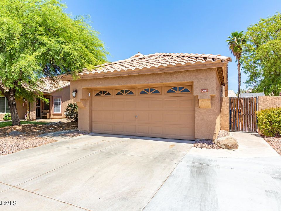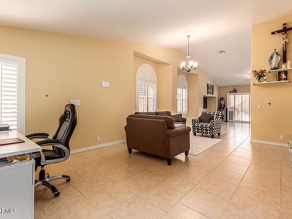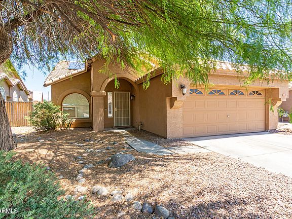 Welcome to this Energy Efficient Solar Home w/3 bedrooms, 2 baths. Open floor plan w/a warm palette, plantation shutters, vaulted ceilings, beautiful tile floors, ceiling fans, & plenty of natural light. Spacious family is perfect for entertaining. Stunning kitchen offers ample white cabinetry, SS appliances, handsome granite counters with tile backsplash, pantry, plant shelves, and a breakfast bar. The main bedroom has a private upscale ensuite with dual sinks. Plush carpet in all bedrooms, ample closets, & pristine baths. The one of a kind backyard has a covered patio, stone fountain, grass landscape, paver patio, artificial turf, and a pergola for the vine plants! Make this gem yours, call now!