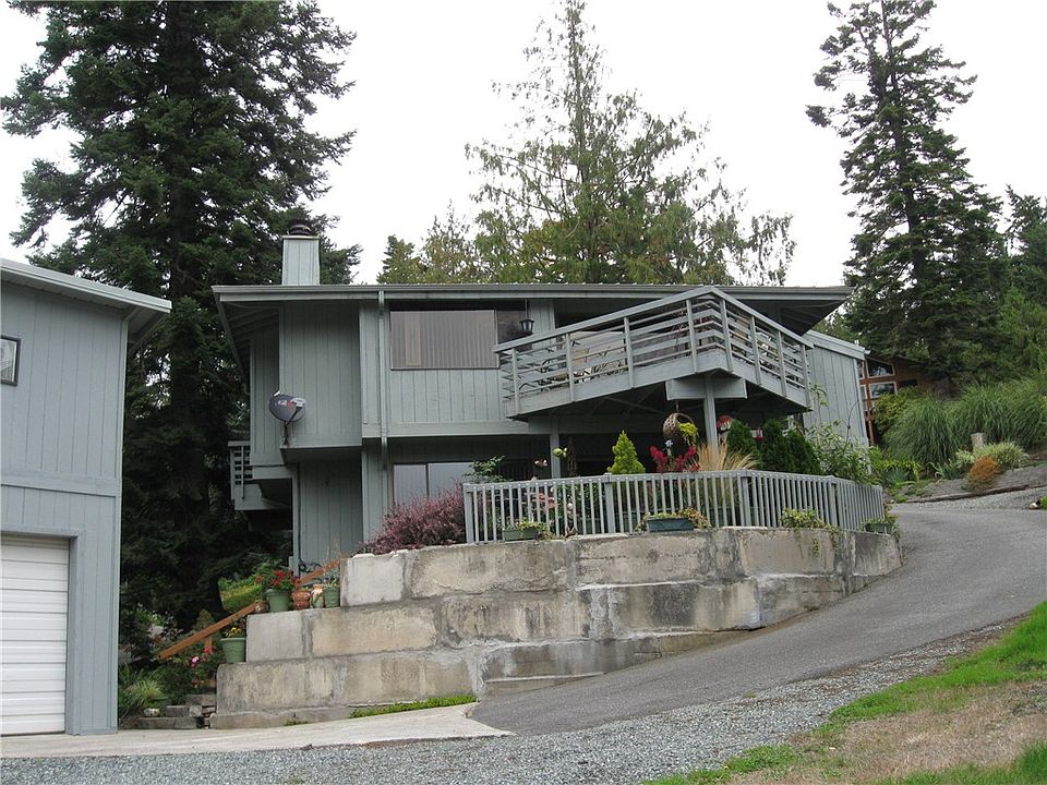 Beautiful home w/ partial water view in wonderful Shelter Bay. 2 Bedrooms, 1 3/4 baths w/ two family rooms. Main floor master w/ full bath plus great room w/vaulted ceilings, propane fireplace, travertine marble floors, and a deck to take in the view. Lower level has family room, bedroom, and bonus room. Lots of storage, paved driveway, plus 23 x 23 ft detached garage w/ loft upstairs. Community offers swimming pools, tennis, golf course, beach access and marina. You have to see this one!