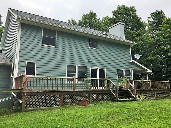 Well built colonial home on a beautiful private wooded lot. Front porch with mahogany flooring welcomes you . The two story entry way features a half bath and opens into the office or possible first floor 4th bedroom. You then enter the eat in kitchen which is open to the living room and formal dining area. Kitchen has a center island and newer stainless refrigerator and stove. Entrance from the 2 car garage into the kitchen is most convenient. Second floor features the master suite with two walk in closets, master bath with jetted tub and separate shower area. Two additional bedrooms, full bath and a second floor laundry room to finish. Full basement for additional storage. This home has so much to offer with easy commute to Ithaca, Lansing or Cortland.