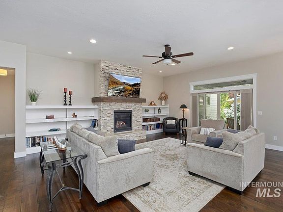 Luxury and comfort await in this dynamic single-level home in Morning Sun Subdivision, NE Twin Falls. The chef’s gourmet kitchen features a gas cooktop, double ovens, refrigerator, granite countertops, and a spacious island. The open, light-filled layout includes hardwood floors, a cozy gas fireplace, and electric blinds for ease in enjoying the outdoors. The lavish master suite offers a freestanding soaker tub, walk-in tile shower, and dual granite vanities, while guest baths are equally impressive with granite and tile finishes. A versatile office/swing room adds flexibility. Enjoy the Outdoors with the perfect amount of landscaping and the east-facing courtyard, or the covered patio in the backyard, which creates the perfect place to enjoy the beauty of this home. A 3-car garage and fully fenced yard complete the property. Welcome Home!
